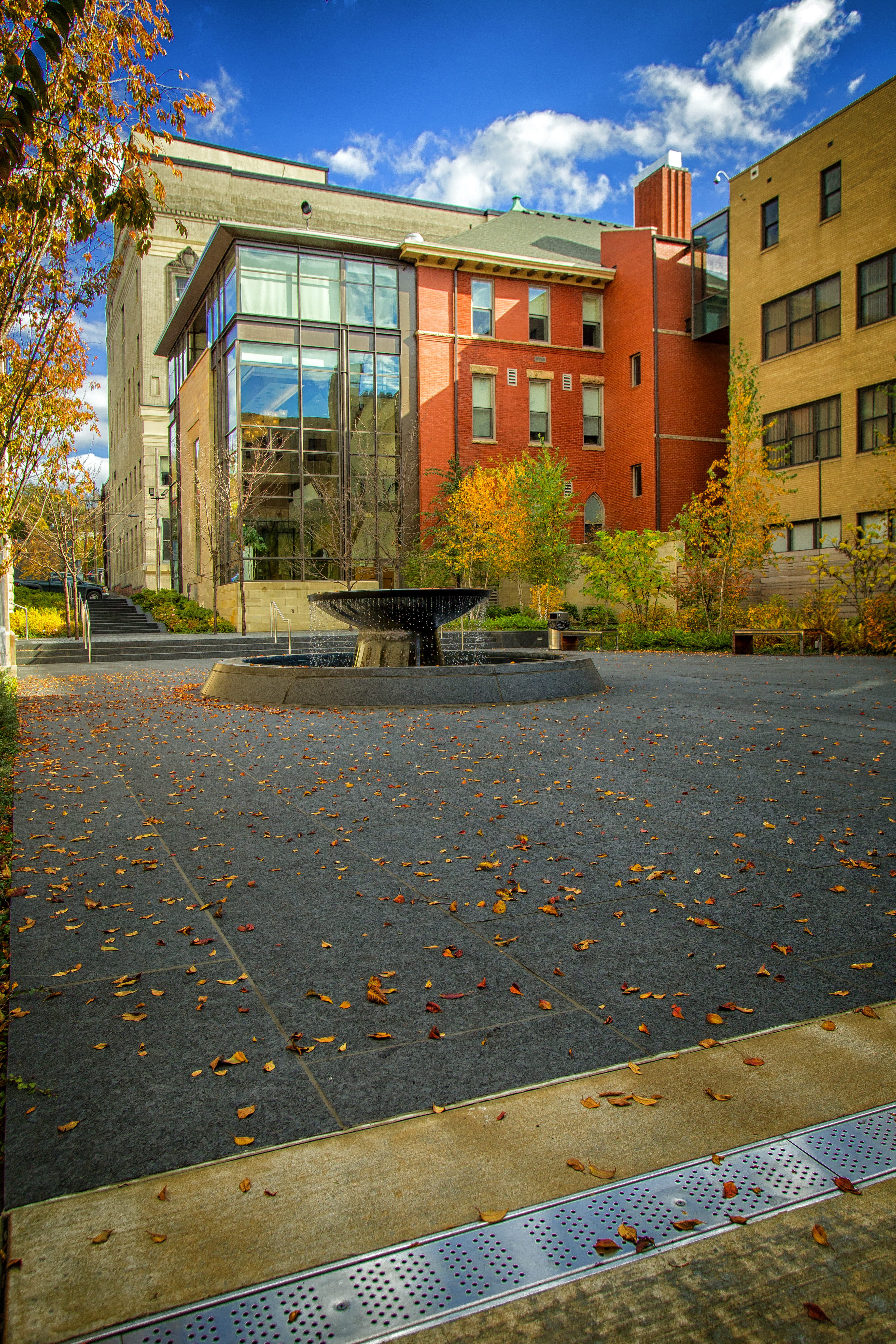 In 2011, the diocese closed the elementary school, and renovations for the new chancery and public space commenced. An existing courtyard of concrete unit pavers and wall systems was removed, and new paving in Mesabi Black® granite from Coldspring was installed. Granite was selected not only for its beauty and durability but also for its versatility.