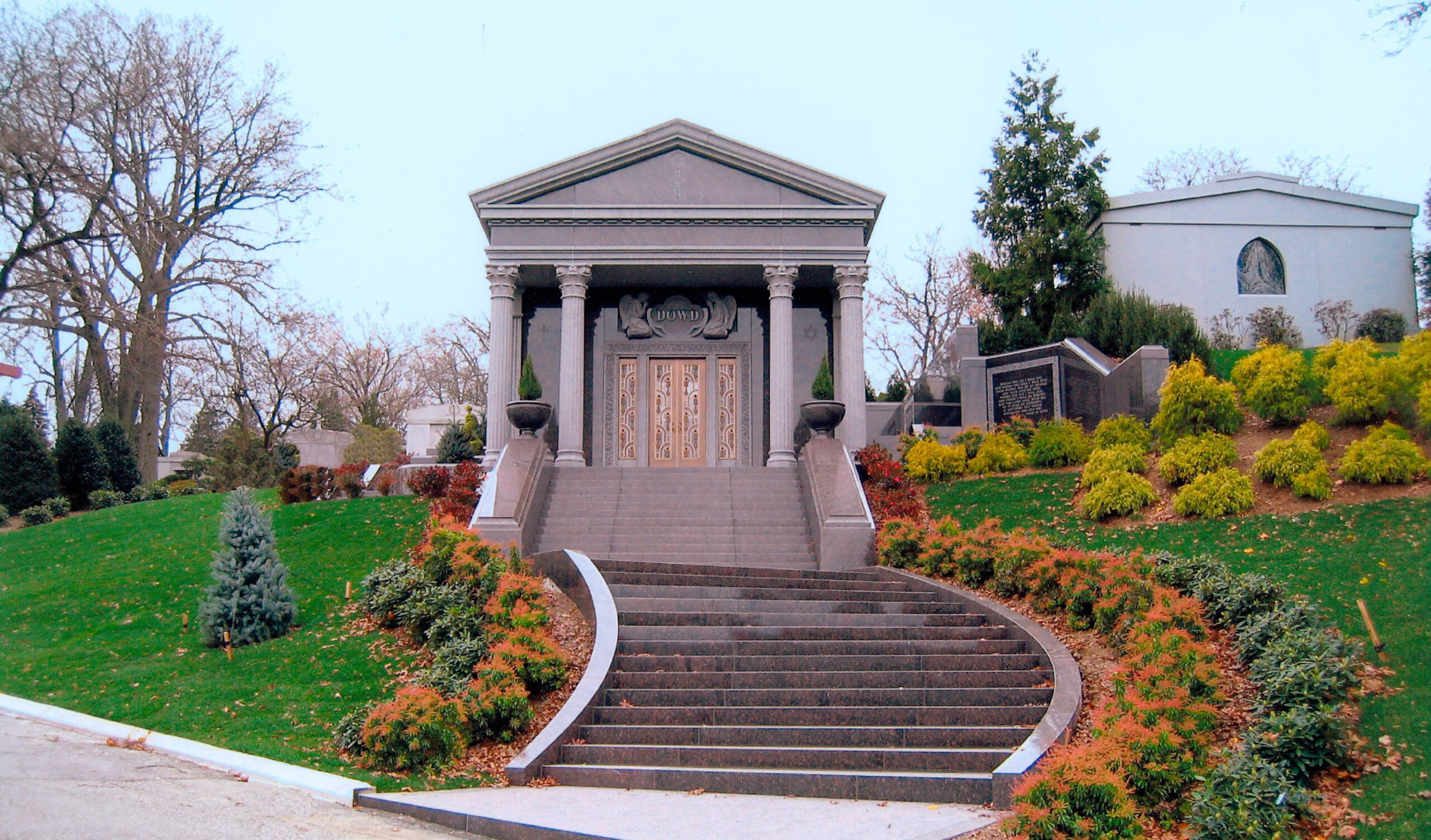 The 20-crypt Dowd private mausoleum is a beautiful tribute to the family. With the grand stairway entrance in Thermal Carnelian® granite and the exquisite granite walkway surrounding the mausoleum, it is awe-inspiring to all that pass by.The beautiful sculptures above the bronze doors are accented by the Corinthian capitals and sanded granite columns. Located in Gate of Heaven Cemetery, Hawthorne, NY, this Private Estates mausoleum is truly a work of art.