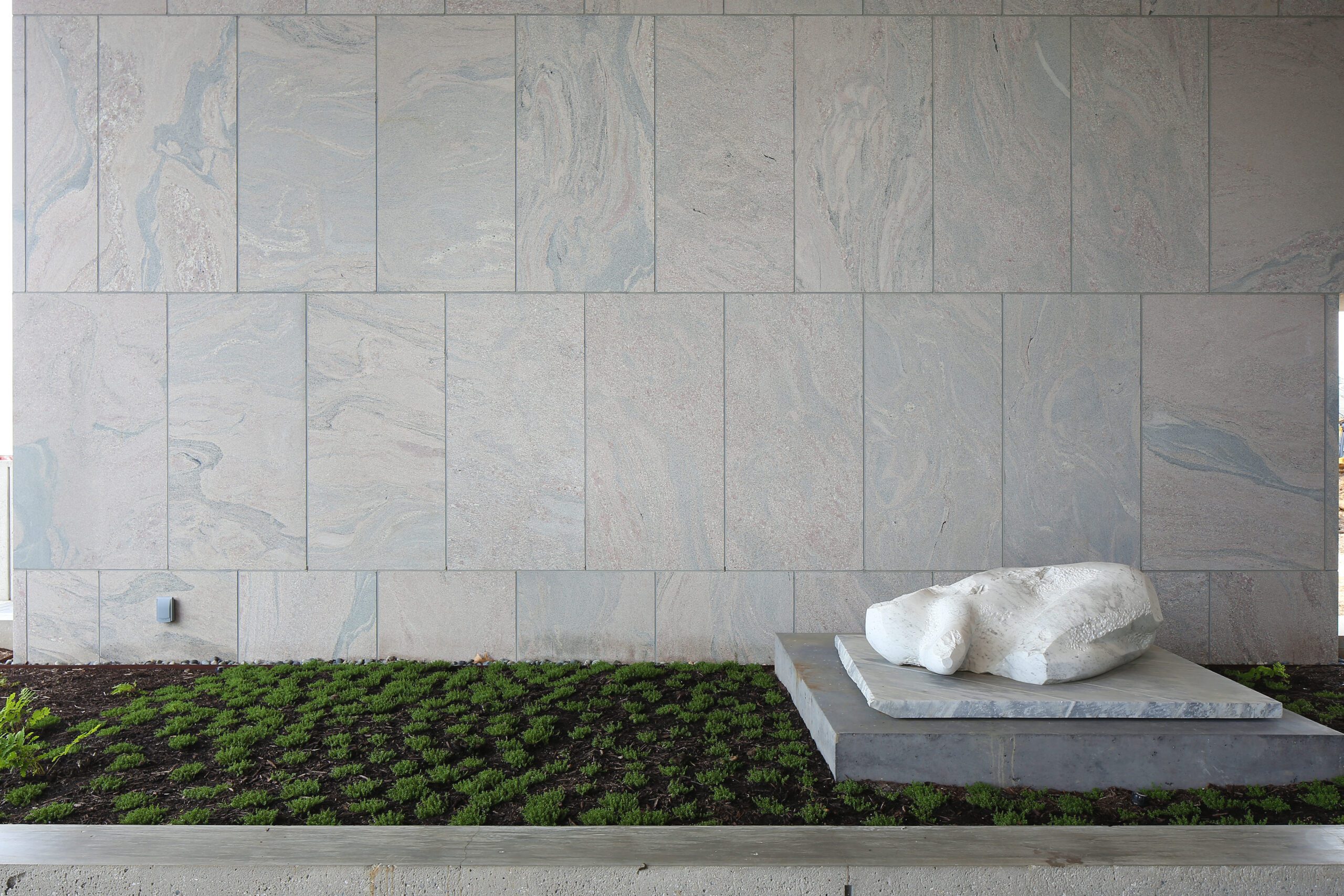 “The architects had very specific requirements for the allowable color range, markings and inclusions for the granite, which we were able to provide,” says Ken Hogan, Regional Sales Manager, Coldspring. During extraction, Coldspring’s experienced quarry team did an excellent job chasing the desirable black markings and not allowing unwanted markings in the product. In the fabrication phase, Coldspring expertly handled the large pieces moving through the plant.