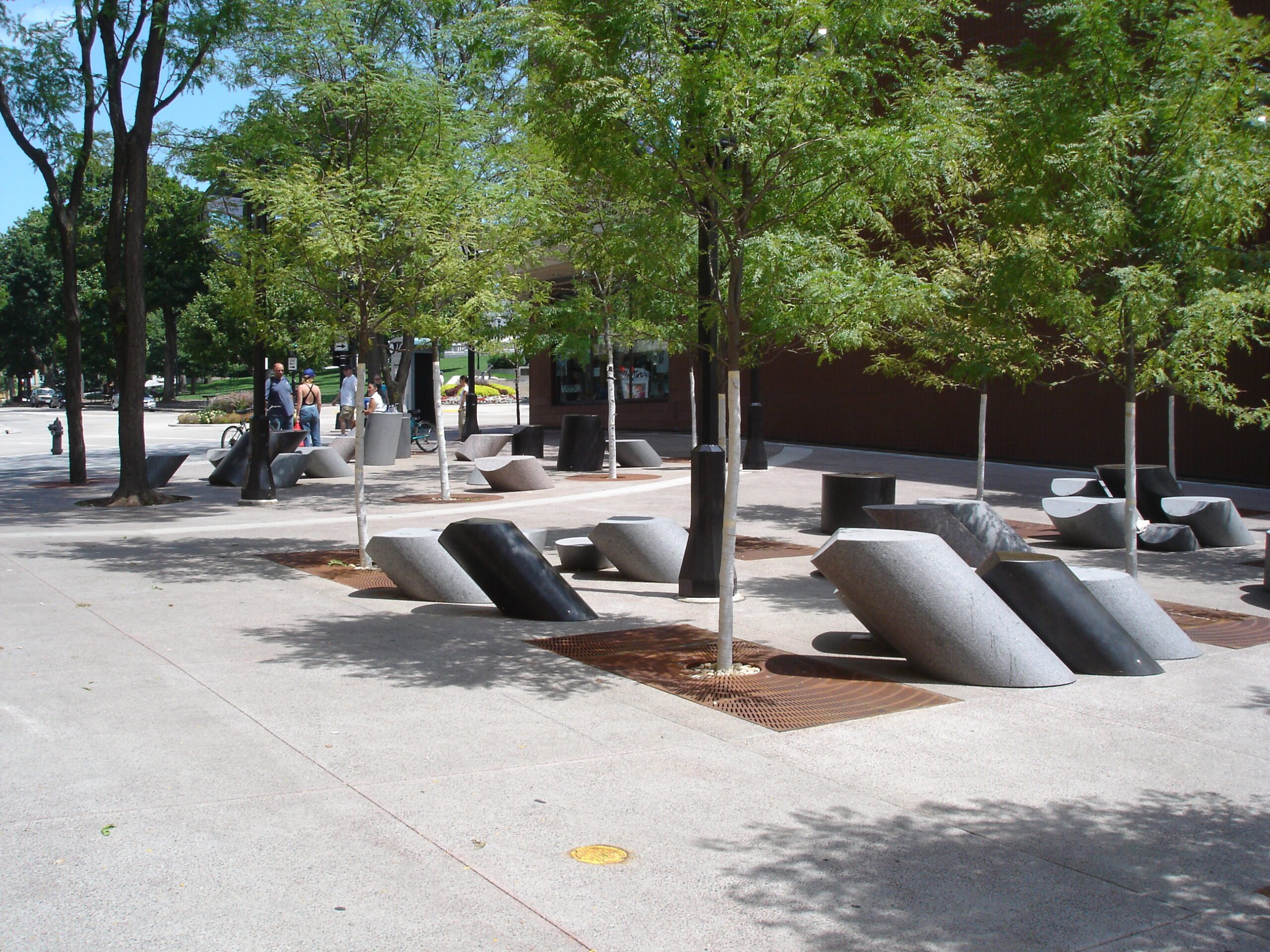 State Street, located in Madison, WI, is lined with several interesting structures. They were created using Carnelian®, Charcoal Black® and Mesabi Black® granite in Polish, Thermal and Diamond® 10 finishes. They are intended not only to add interest to State Street, but also to create seating along the way.