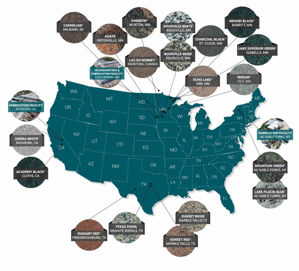 Coldspring currently owns and operates more than 30 quarries and multiple stone fabrication facilities in New York, Minnesota, South Dakota, North Dakota, Texas, California and Canada. A bronze foundry is located at company headquarters in Minnesota. More than 1,000 employees currently support these operations.