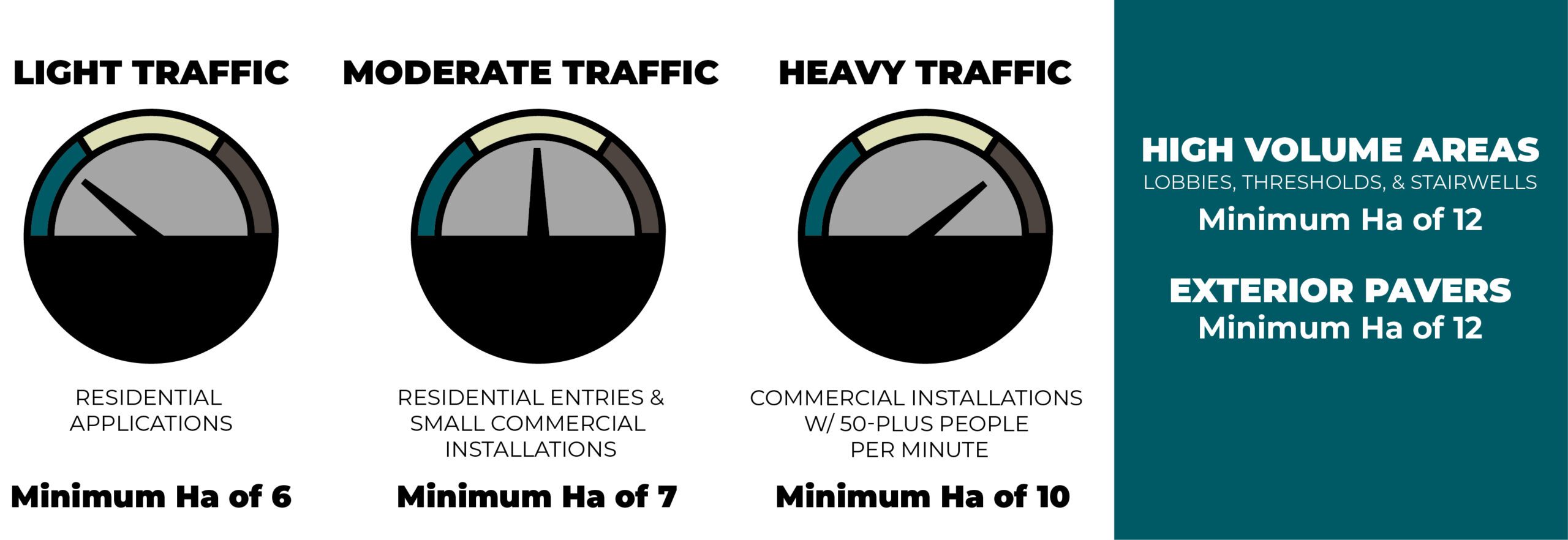 The stone industry has established general thresholds for abrasive hardness for light, medium and heavy traffic: