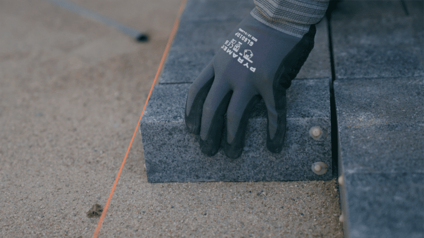 Traditional granite pavers rely on manual spacers and frequent adjustments to achieve consistent joints. TabStone incorporates pre-adhered spacers, a first for granite pavers, helping installers maintain alignment and uniform joint widths throughout installation. This approach reduces layout time and supports a more predictable installation process while retaining the durability of granite.