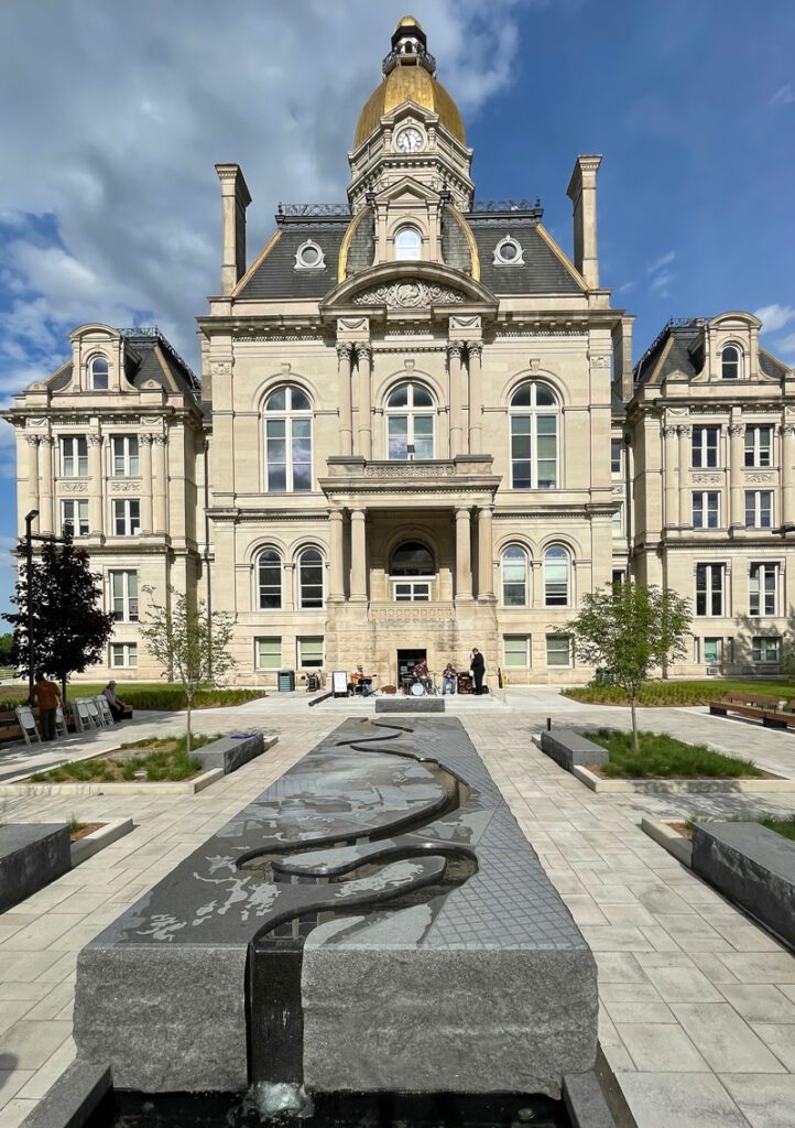 Another exciting project featuring Mesabi Black, known as Turn to the River in Terre Haute, Indiana, was recently completed. The project is part of an ambitious vision to connect downtown with the Wabash Riverfront area through public art, new pathways and rethinking use of spaces. The first phase of the project includes a remodeled plaza and a spectacular black granite sculpture with a stream of water flowing through a black granite sculpture to depict the course of the Wabash River and its banks. The sculpture, designed by artist Brad Goldberg, was created using the beautiful and versatile Mesabi Black granite. It includes a carved abstraction of the Wabash River Valley and pools in which the water falls at both ends of the artwork. Future phases will include the development of a promenade with an event space and an elevated overlook that will provide beautiful views of a picturesque portion of the Wabash River.